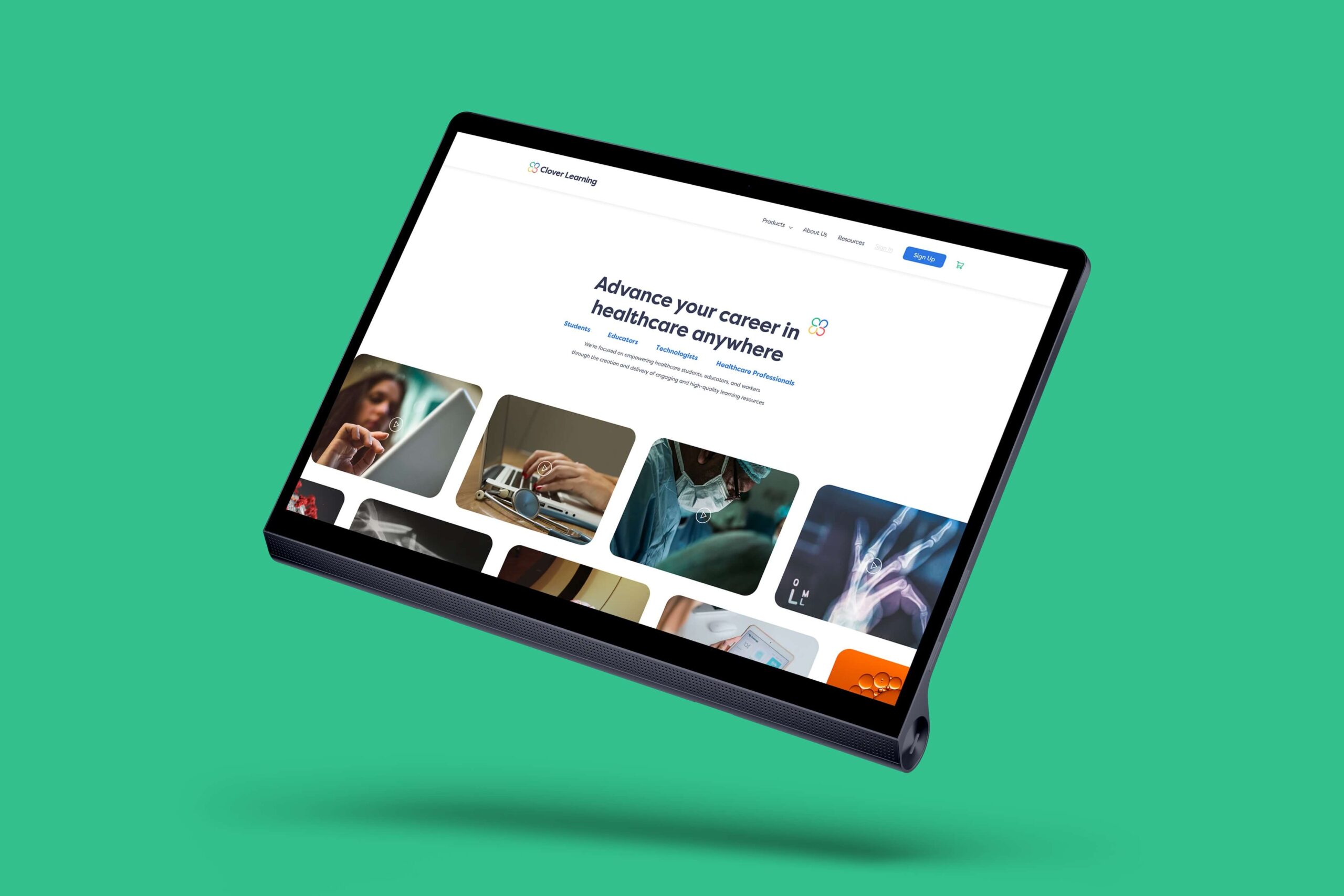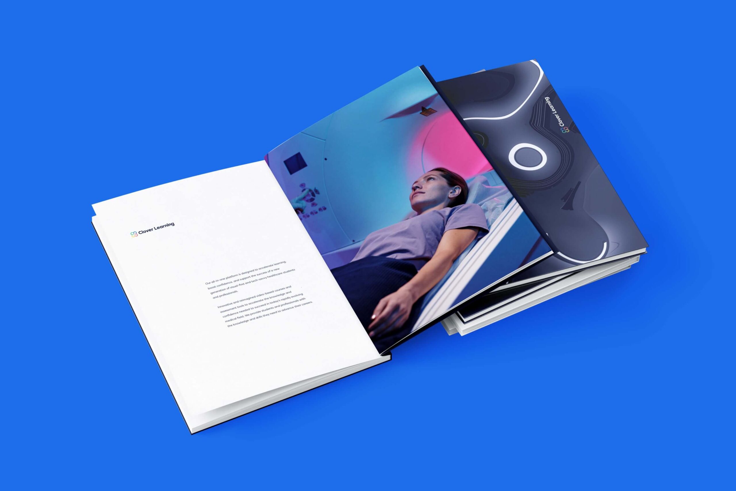 In terms of user experience, we focused on enhancing interactivity and engagement to optimize consumer retention. In developing a new brand identity, we held onto the brand story while elevating their approach to typography and color. By combining thoughtful U/I design with immersive U/X elements, we aimed to empower radiologists and healthcare professionals to dive head first into Clover Learning’s accessible, engaging, and effective educational experience.