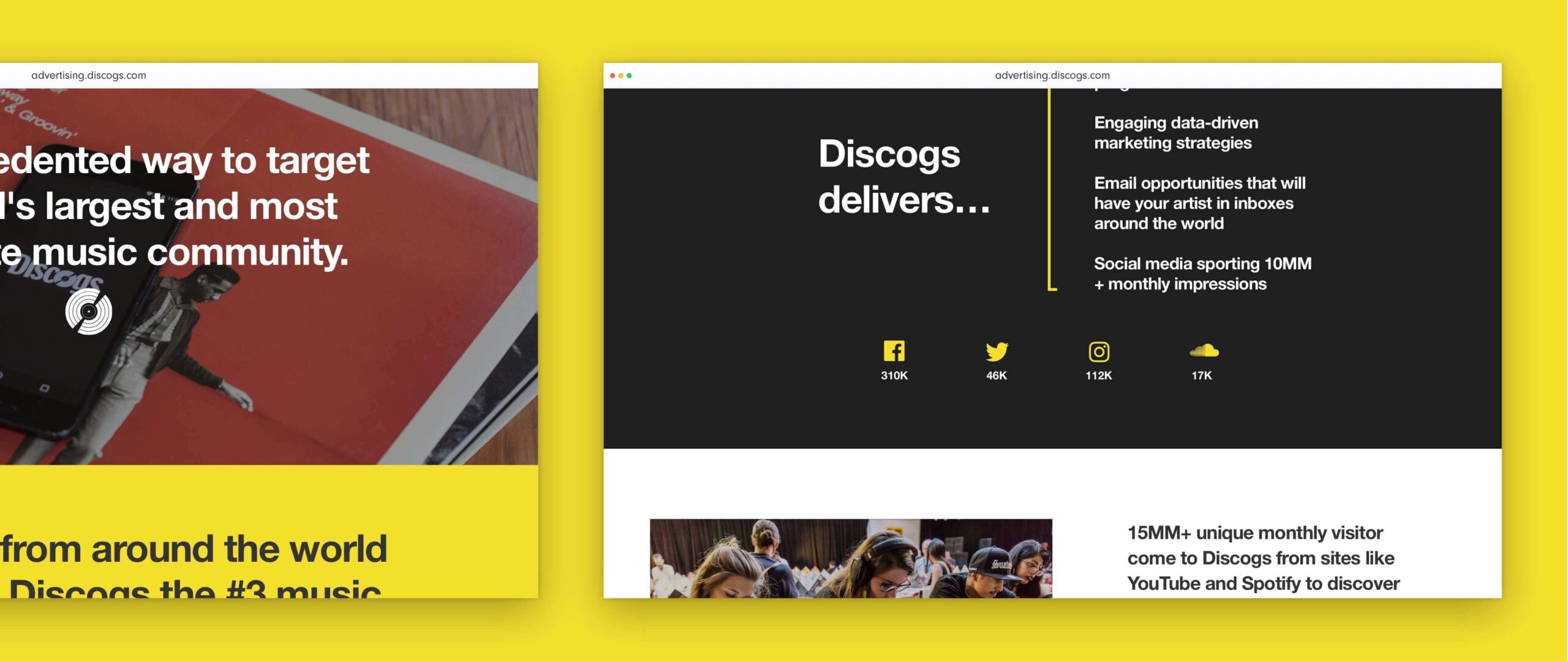 Discogs’ team reached out to us when they had completed their plan to partner more effectively with creative agencies and labels. With millions upon millions of data points around artist content and discographies, Discogs set out to connect users with fresh new sponsored content to help them find more of the things they already (instinctively) like.